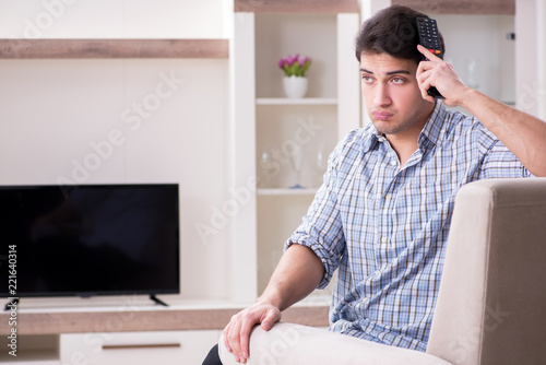 Young man watching tv at home