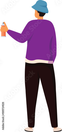 Young man wearing a bucket hat is holding a spray can, ready for action