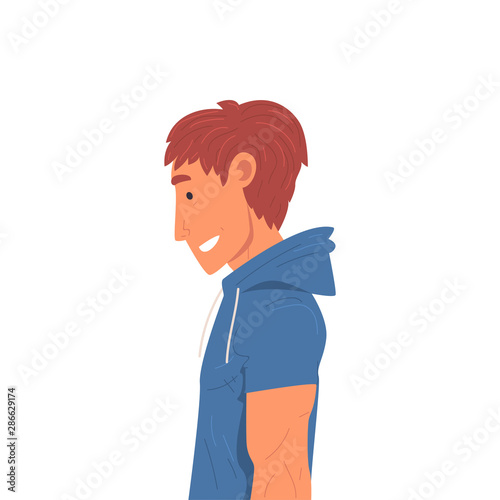 Young Man Wearing T-shirt with Hood and Short Sleeve Side View Vector Illustration