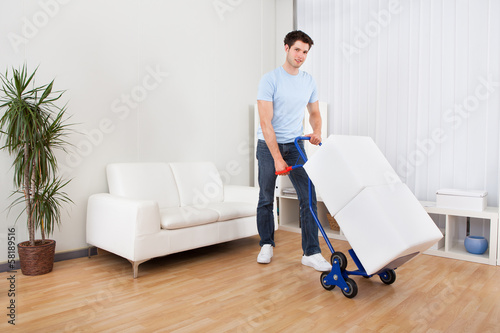Young Man With Box On Trolley