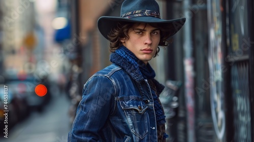 Young Man with Hat Posing on Urban Street
