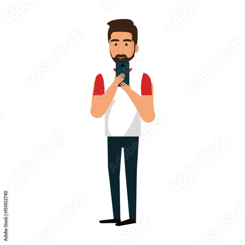 young man with smartphone avatar character vector illustration design
