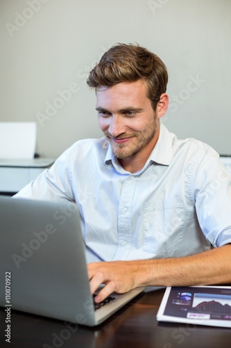 Young man working on laptop in office