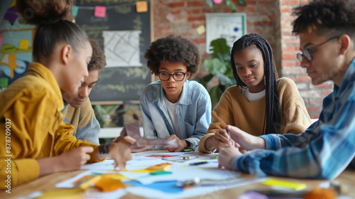 Young people leading a community project, confident expressions and dynamic activity, bottom third copy space