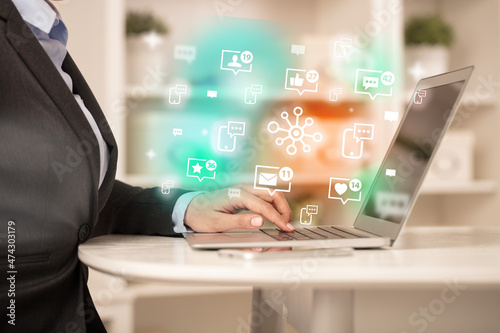 Young person surfing on social media network