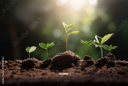Young plant seedling growing in soil on blurred nature background, World Environment Day concept, Generative Ai