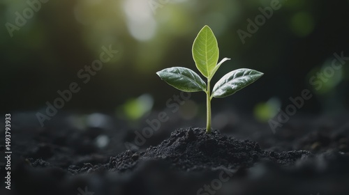 Young Plant Sprouting from Dark Soil, Indicating New Growth and Environmental Awareness