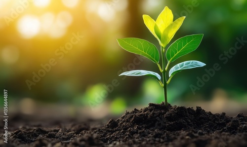 Young plant sprouting from soil in sunlight, symbolizing growth and renewal