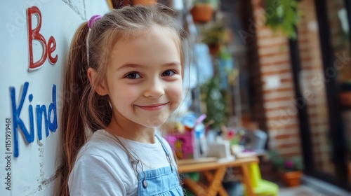 young pretty girl with soft smile with word " Be Kind "