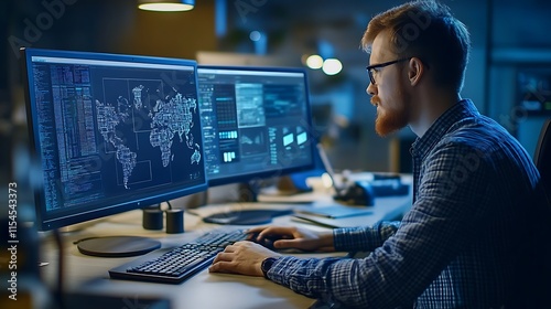 Young Professional Engaged in IT Work and Online Trading on a Computer in a Modern Workspace