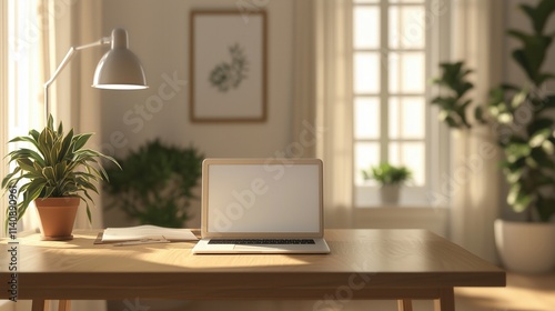 Young professional working on sleek laptop in minimalist home office bright natural light modern environment focused concept