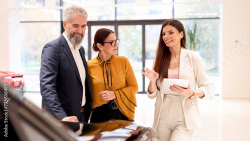 Young saleswoman finding the best car for a mature couple
