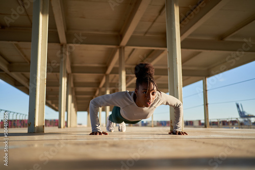 Young sportswoman training on seafront
