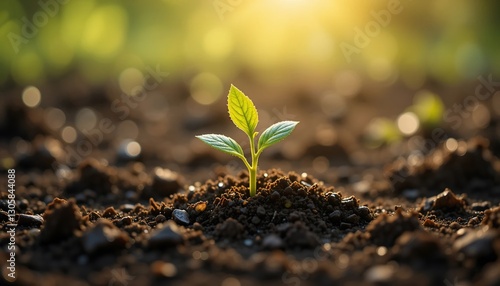 Young Sprout Emerging from Soil at Sunrise New Growth Nature Photography