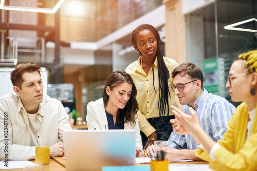 young stylish people sharing with knowledge , information at the meeting. close up photo