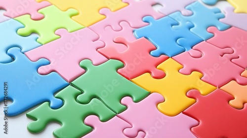 Young Team Assembling Colorful Jigsaw Puzzle Parts Together