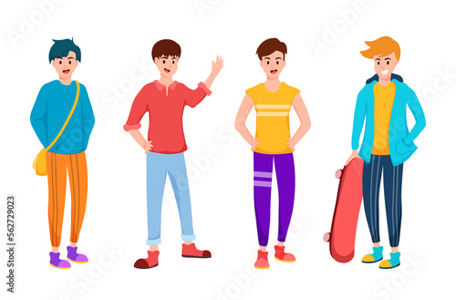 Young teenager school boys in cartoon character,wearing trendy leisure costume