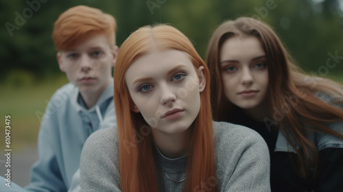 young teenagers, underage teenagers, outside in autumn clothes with hat and jacket, friends multicultural multiracial multiethnic, group or friends, classmates, schoolyard or fictional place