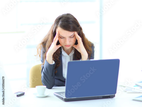 Young thoughtful business woman, working with the