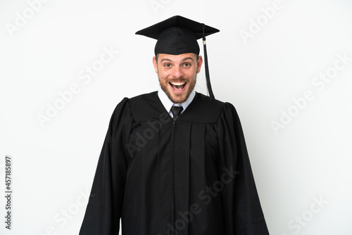 Young university Brazilian graduate isolated on white background with surprise facial expression