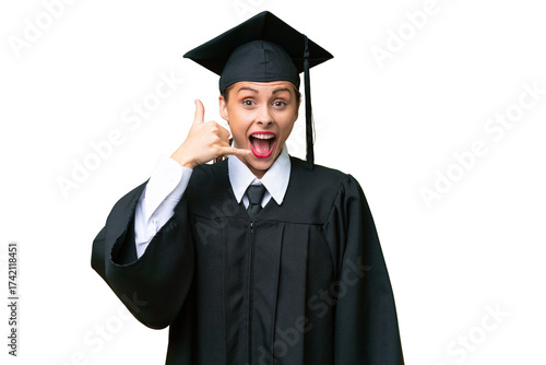Young university graduate caucasian woman over isolated background making phone gesture. Call me back sign