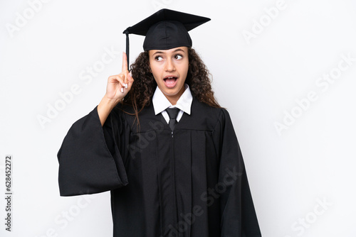 Young university graduate Arab woman isolated on white background intending to realizes the solution while lifting a finger up