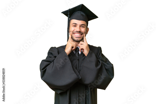 Young university graduate man over isolated background smiling with a happy and pleasant expression