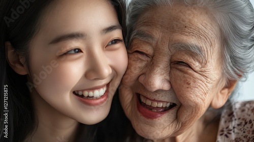Young woman and her elderly mother take care of their skin and look great,Two generations,Beautiful middle aged mother and her adult daughter,skincare and Aging concept,Comparison of young and old.