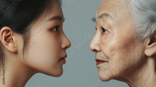 Young woman and her elderly mother take care of their skin and look great,Two generations,Beautiful middle aged mother and her adult daughter,skincare and Aging concept,Comparison of young and old.