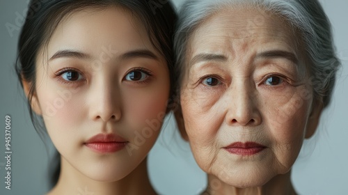 Young woman and her elderly mother take care of their skin and look great,Two generations,Beautiful middle aged mother and her adult daughter,skincare and Aging concept,Comparison of young and old.