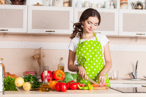 Young Woman Cooking in the kitchen. Healthy Food. Dieting Concep