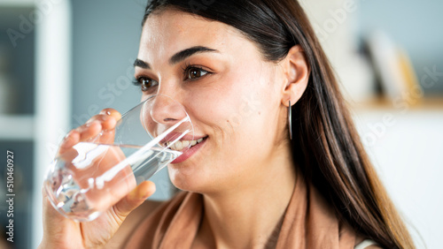 Young woman drinks a glass of water