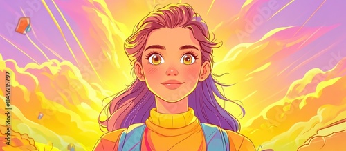 Young woman enjoying a vibrant sunset view while taking a selfie symbolizing youth travel adventure and lifestyle exploration