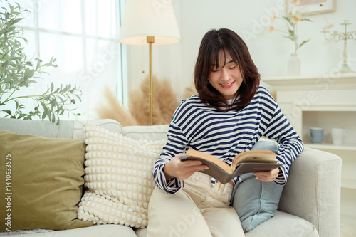 Young Woman Enjoys Reading a Book in a Cozy Living Room Setting