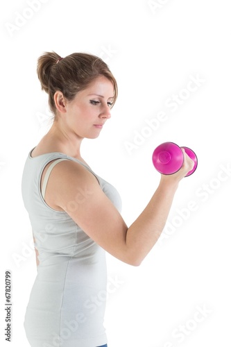 Young woman exercising with dumbbell