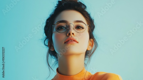 Young woman in eyeglasses on light background