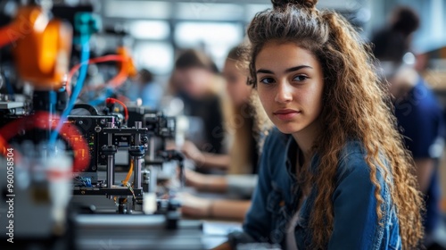 Young Woman in Robotics Lab