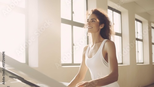 young woman in the gym pilates yoga background