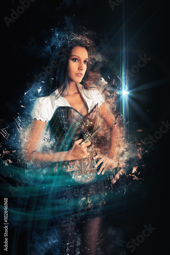Young Woman in Western Costume and Holding Pistol