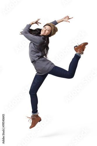 Young woman jumping in mid-air