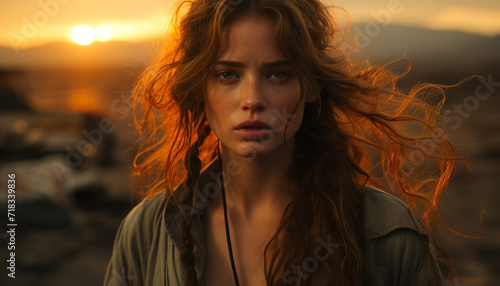 Young woman looking at camera, beauty in nature, confidence generated by AI