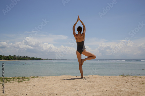 Young woman practising yoga on the beach