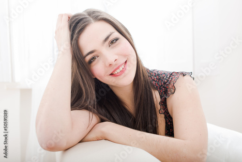Young woman relaxing and smiling at home