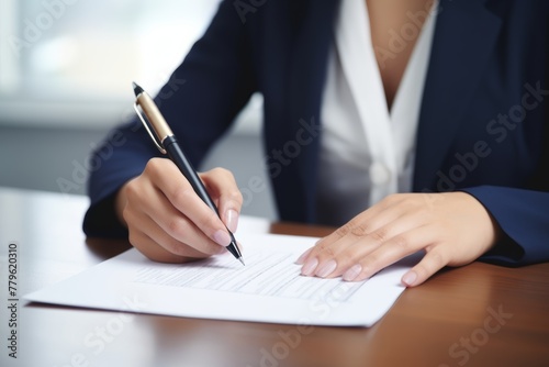 Young woman signing contract for new employee The atmosphere is friendly. There is confidence building for employees.