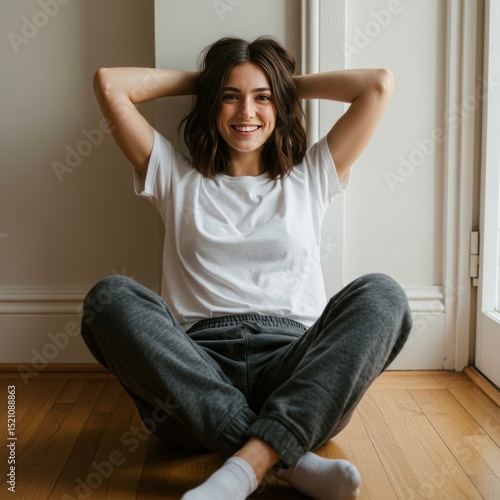 young woman sitting on the floor