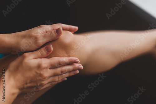 Young woman smearing cream on her leg. Epilation concept. Sexy