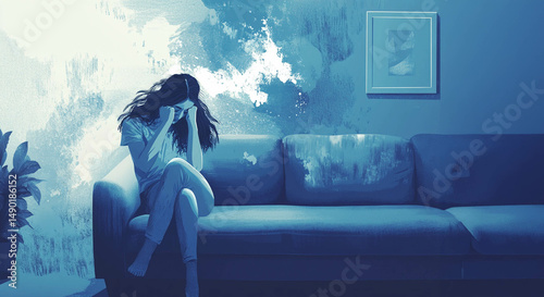 Young Woman Struggling with Depression and Anxiety.Generated image