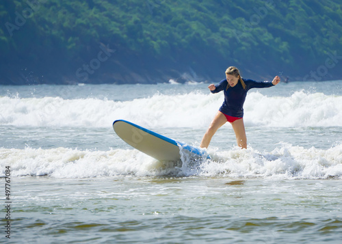 Young woman surfing in the Indian ocean