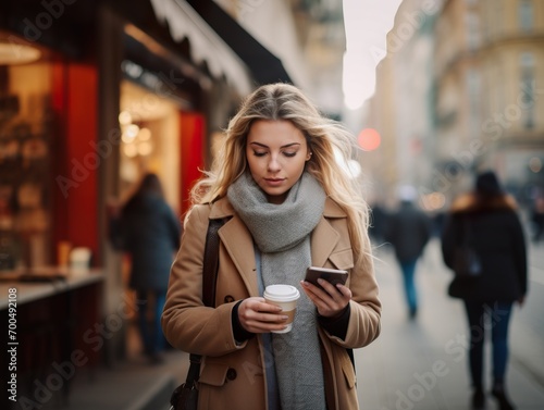Young woman using smartphone in city street