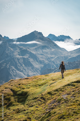 Young Woman With A Backpack on The Top Of a Beautiful wild Landscape. High quality photo
